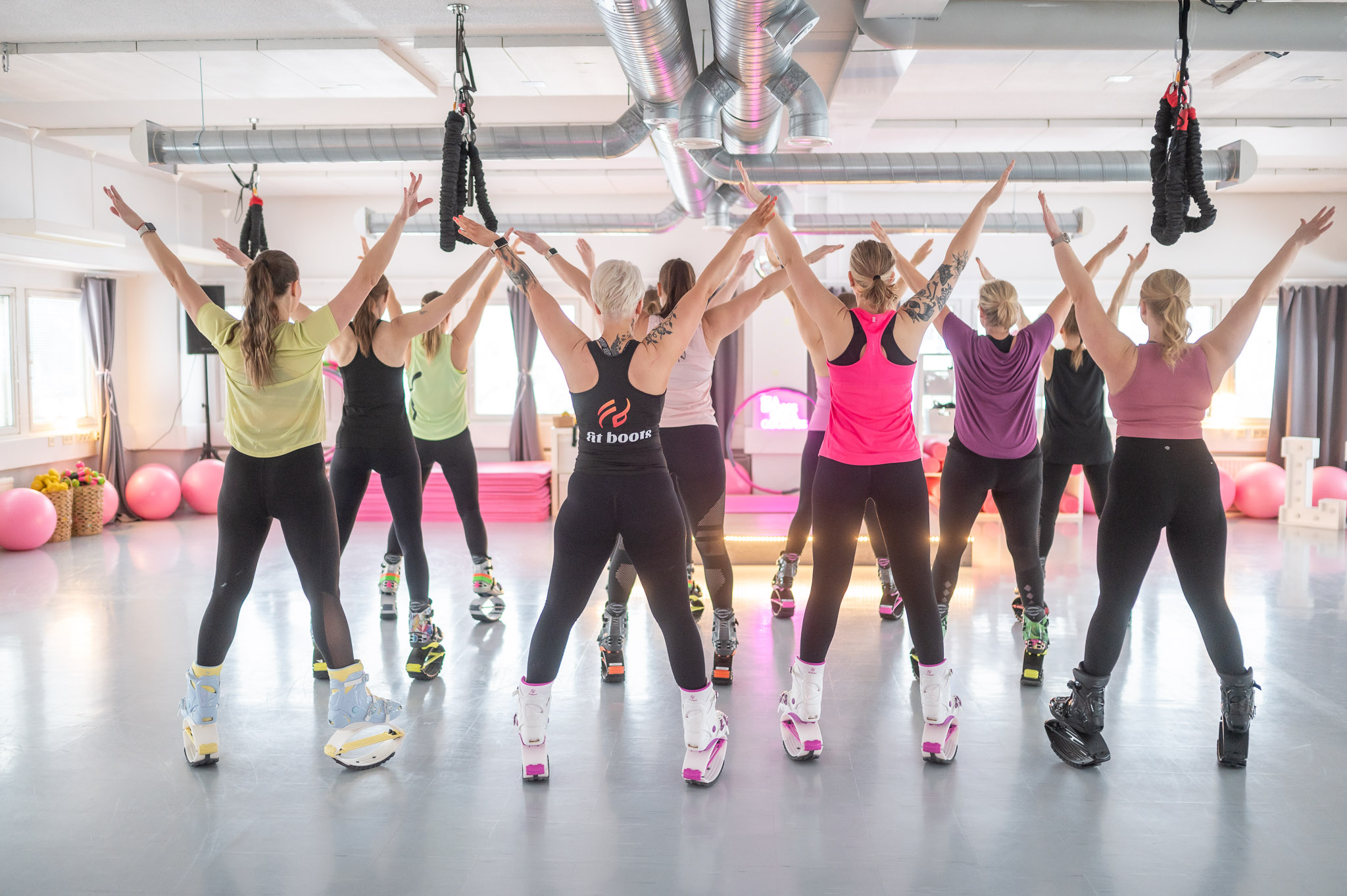 Ja sitten ne erikoisuudet: meiltä löytyy liikuntaa, jota et muualta löydä! Kokeile Kangoo Jumps & Fit Boots– pomppukenkiä! Tai suuntaa katseesi hetkeksi kohti kattoa ja liity mukaan Bungee Fun-tunnille, jossa kiskotaan kunnon tehot irti benjiköydellä. Meillä pääsee myös pomppimaan minitrampoliineilla ja pyörittämään painohulavannetta Lumohoop -tunnilla.